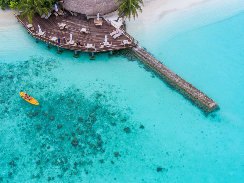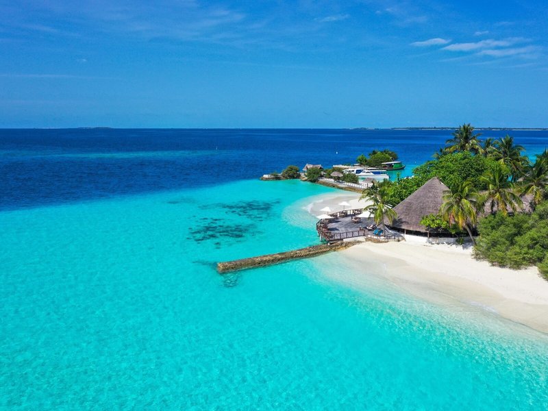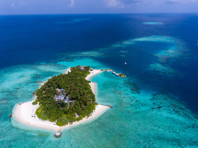 Lage & Umgebung Die Insel liegt im Nordwesten des Nord-Male-Atolls. Die gepflegte Anlage mit üppiger, tropischer Vegetation verfügt über einen flach abfallenden Sandstrand und lädt zum Baden und Surfen in der Lagune ein. Das nahegelegene Hausriff (Innenriff) bietet seinen Gästen gute Schnorchel- und Tauchmöglichkeiten. Transfer per Schnellboot.