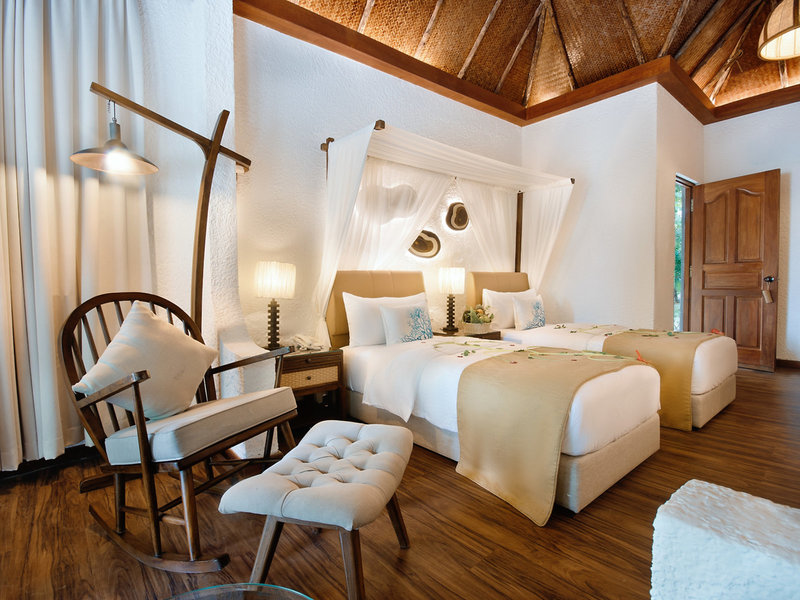 - Deluxe Beach Bungalow (BUX1), Bungalow, Meerseite, eingeschränkter Meerblick, ca. 50 m², letzte Teilrenovierung 2025, Gesamtanzahl der Räume in diesem Zimmertyp: 1, Aufteilung wie folgt: kombiniertes Wohn-/Schlafzimmer, Klimaanlage: ohne Gebühr, individuell regelbar, Fußboden: Parkett, Safe: ohne Gebühr, Deckenventilator, Sitzecke, Schreibtisch, Minibar: gegen Gebühr, Softdrinks: gegen Gebühr, Wasser: gegen Gebühr, alkoholische Getränke: gegen Gebühr, Snacks: gegen Gebühr, Minibarauffüllung, Telefon, Internet: WLAN/WiFi: ohne Gebühr, Roomservice: täglich 10:00 Uhr - 22:00 Uhr, gegen Gebühr, Reinigungsservice: ohne Gebühr, Dusche, WC, Föhn, Terrasse: mit Liegestühlen, mit Liegen