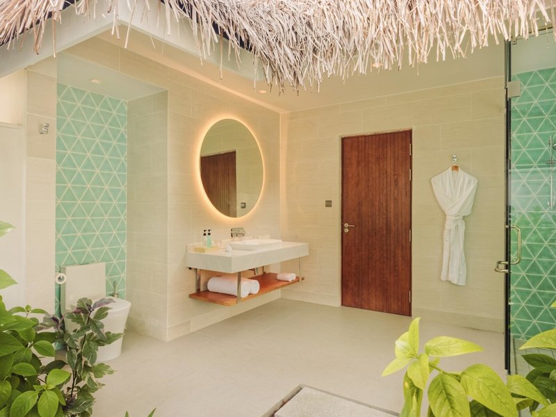 - Inter-Connected Beach Villa with jacuzzi (VIM9), Bungalow, Nichtraucherzimmer, Meerseite, Meerblick, ca. 160 m², Gesamtanzahl der Räume in diesem Zimmertyp: 2, Aufteilung wie folgt: bestehend aus 2 Doppelzimmern mit Verbindungstür, Babybett: ohne Gebühr, Anfrage notwendig, Klimaanlage: ohne Gebühr, individuell regelbar, Fußboden: PVC, Safe: ohne Gebühr, Deckenventilator, Standventilator, Sofa, Schreibtisch, Bügeleisen, Bügelbrett, Nespressomaschine, Kaffee-/Teezubereiter, Wasserkocher, Minibar: gegen Gebühr, Softdrinks: gegen Gebühr, bei All Inclusive inklusive, Wasser, alkoholische Getränke: gegen Gebühr, Snacks: gegen Gebühr, Minibarauffüllung: täglich, Telefon, Internet: WLAN/WiFi: ohne Gebühr, Fernseher: Flatscreen, im Wohnbereich, Sat-TV, Roomservice: täglich, gegen Gebühr, Reinigungsservice: täglich, ohne Gebühr, Dusche, separate Dusche, Außendusche, WC, separates WC, Bademantel: ohne Gebühr, Slipper: ohne Gebühr, Föhn, Terrasse: mit Liegestühlen