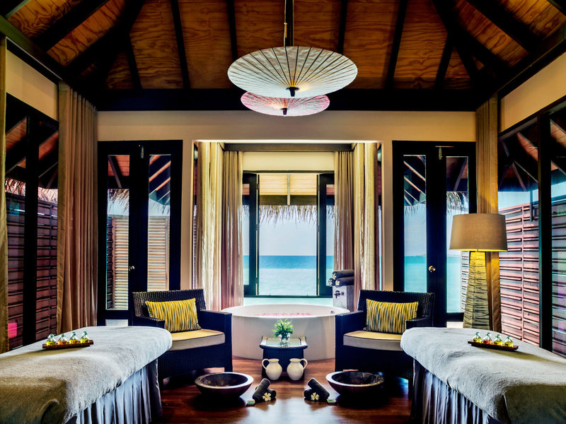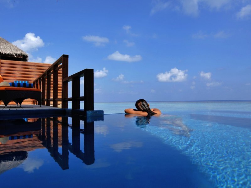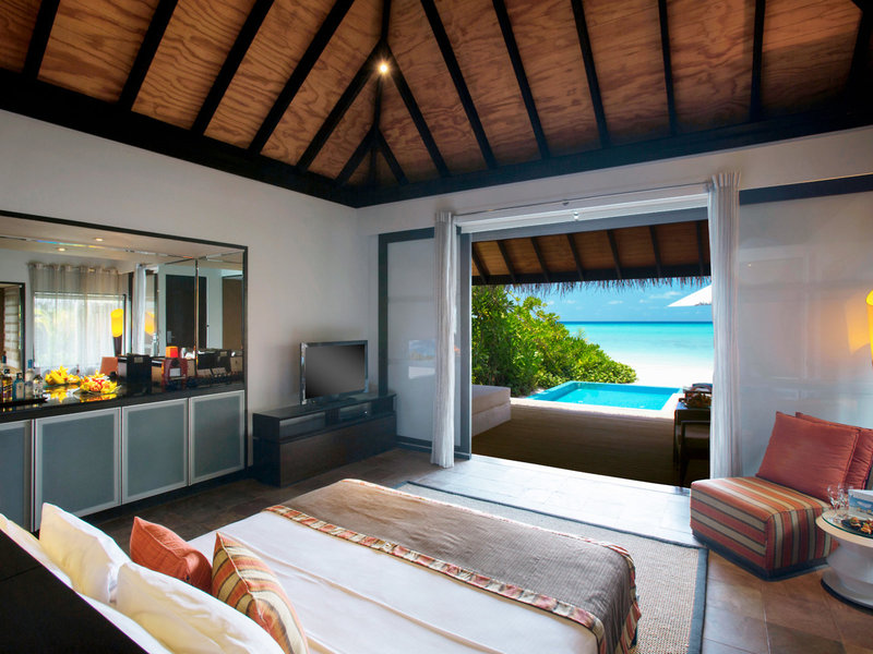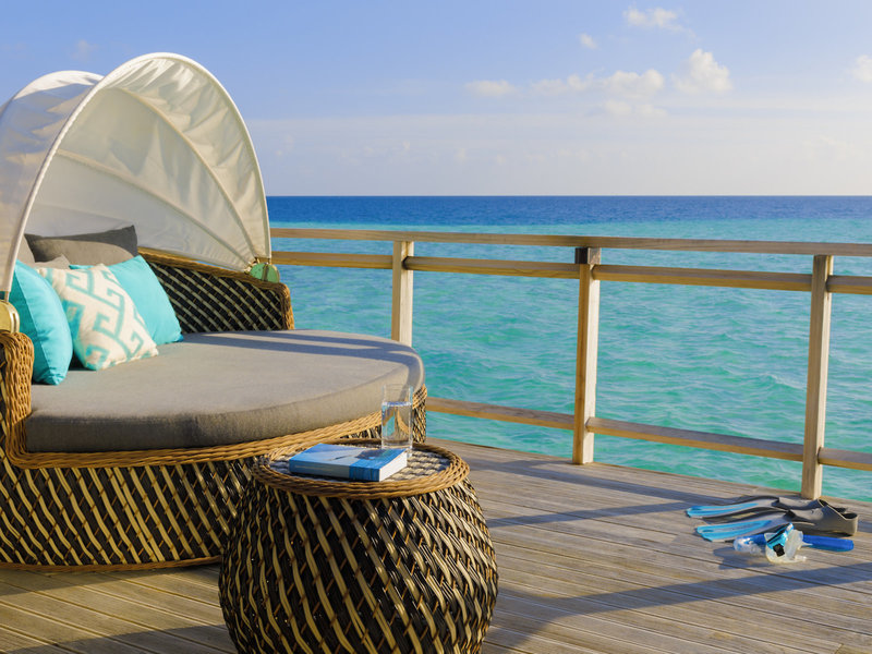 - Water Bungalow with Pool (BUM3), Wasserbungalow, Mindestalter im Zimmer: 12 Jahre, Meerblick, ca. 80 m², Gesamtanzahl der Räume in diesem Zimmertyp: 1, Aufteilung wie folgt: kombiniertes Wohn-/Schlafzimmer, Babybett: ohne Gebühr, Anfrage notwendig, Klimaanlage: ohne Gebühr, individuell regelbar, Fußboden: Parkett, Safe: ohne Gebühr, Deckenventilator, Sitzecke, Sofa, Schreibtisch, Bügeleisen, Bügelbrett, Nespressomaschine, Kaffee-/Teezubereiter, Wasserkocher, Minibar: gegen Gebühr, Softdrinks: gegen Gebühr, Wasser: gegen Gebühr, alkoholische Getränke: gegen Gebühr, Snacks: gegen Gebühr, Minibarauffüllung: täglich, Telefon, Internet: WLAN/WiFi: ohne Gebühr, Fernseher: Flatscreen, deutsches Programm, Deutsche Welle, Sat-TV, DVD-Player, Roomservice: täglich 24 Stunden, gegen Gebühr, Reinigungsservice: täglich, ohne Gebühr, Dusche, Badewanne, WC, Bademantel: ohne Gebühr, Slipper: ohne Gebühr, Föhn, Terrasse: mit Liegestühlen, mit Liegen, mit Plunge Pool