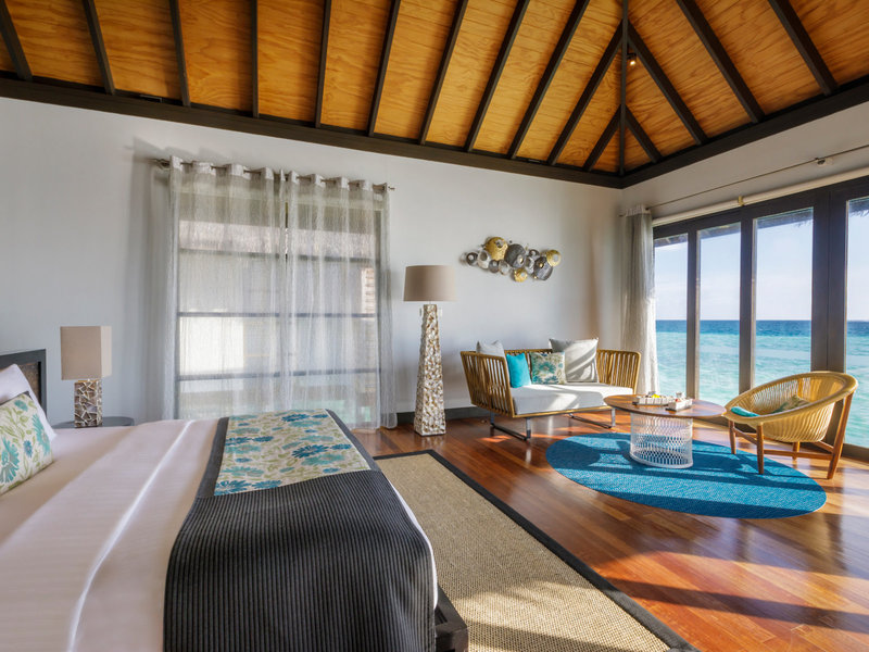 - Water Suite (SUX1), Suite, Nichtraucherzimmer, Lagunenseite, Meerblick, Lagunenblick, ca. 270 m², Gesamtanzahl der Räume in diesem Zimmertyp: 2, Aufteilung wie folgt: Wohnzimmer, 1 Schlafzimmer, 1 King Size Bett (190x200cm), Klimaanlage: ohne Gebühr, Januar - Dezember, individuell regelbar, kalt, Fußboden: Parkett, Safe: ohne Gebühr, Deckenventilator, Sitzecke, Sofa, Schreibtisch, Bügeleisen, Bügelbrett, Nespressomaschine, Kaffee-/Teezubereiter, Wasserkocher, Esstisch, Minibar: gegen Gebühr, Softdrinks: gegen Gebühr, Wasser: ohne Gebühr, alkoholische Getränke: gegen Gebühr, Snacks: gegen Gebühr, Minibarauffüllung: täglich, Telefon, Internet: WLAN/WiFi: ohne Gebühr, Fernseher: Flatscreen, im Wohnbereich, im Schlafzimmer, deutsches Programm, Deutsche Welle, Kabel-TV, Roomservice: täglich 24 Stunden, gegen Gebühr, Butlerservice: täglich, ohne Gebühr, Reinigungsservice: täglich, ohne Gebühr, Dusche, Außendusche, Regendusche, Badewanne, WC, Bademantel: ohne Gebühr, Slipper: ohne Gebühr, Föhn, Kosmetikspiegel, Terrasse: mit Liegestühlen, mit Liegen, mit Sitzgelegenheit, mit Dusche, mit Private Pool