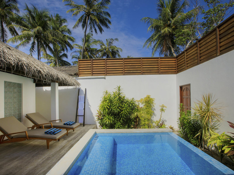 - Deluxe Villa with Pool (BUX4), Bungalow, Gartenseite, Gartenblick, ca. 110 m², Gesamtanzahl der Räume in diesem Zimmertyp: 1, Aufteilung wie folgt: kombiniertes Wohn-/Schlafzimmer, Babybett: ohne Gebühr, Anfrage notwendig, Klimaanlage: ohne Gebühr, individuell regelbar, Safe: ohne Gebühr, Deckenventilator, Sitzecke, Sofa, Schreibtisch, Bügeleisen, Bügelbrett, Nespressomaschine, Kaffee-/Teezubereiter, Wasserkocher, Minibar: gegen Gebühr, Softdrinks: gegen Gebühr, Wasser: gegen Gebühr, alkoholische Getränke: gegen Gebühr, Snacks: gegen Gebühr, Minibarauffüllung: täglich, Telefon, Internet: WLAN/WiFi: ohne Gebühr, Fernseher: Flatscreen, deutsches Programm, Deutsche Welle, Sat-TV, DVD-Player, Roomservice: täglich 24 Stunden, gegen Gebühr, Reinigungsservice: täglich, ohne Gebühr, Dusche, separate Dusche, Außendusche, Regendusche, WC, Bademantel: ohne Gebühr, Slipper: ohne Gebühr, Föhn, Kosmetikspiegel, Terrasse: mit Liegen, mit Sitzgelegenheit, mit Plunge Pool