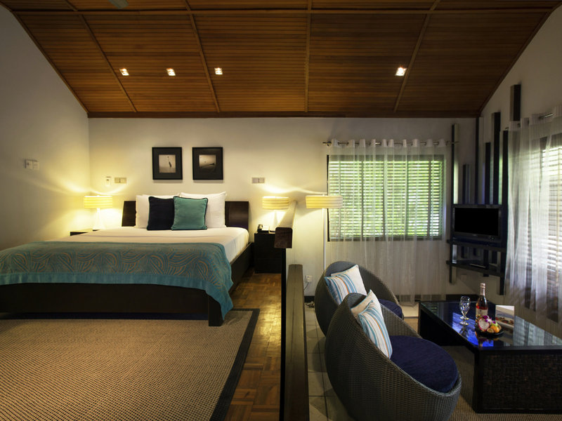 - Two Bedroom Deluxe Villa (BUX5), Bungalow, Gartenseite, Gartenblick, ca. 75 m², Gesamtanzahl der Räume in diesem Zimmertyp: 1, Aufteilung wie folgt: kombiniertes Wohn-/Schlafzimmer, Babybett: ohne Gebühr, Anfrage notwendig, Klimaanlage: ohne Gebühr, individuell regelbar, Safe: ohne Gebühr, Deckenventilator, Sitzecke, Schreibtisch, Kaffee-/Teezubereiter, Wasserkocher, Minibar: gegen Gebühr, Softdrinks: gegen Gebühr, Wasser: gegen Gebühr, alkoholische Getränke: gegen Gebühr, Snacks: gegen Gebühr, Minibarauffüllung: täglich, Telefon, Internet: WLAN/WiFi: ohne Gebühr, Fernseher: Flatscreen, deutsches Programm, Deutsche Welle, Sat-TV, DVD-Player, Roomservice: täglich 24 Stunden, gegen Gebühr, Reinigungsservice: täglich, ohne Gebühr, Dusche, Außendusche, Regendusche, WC, Bademantel: ohne Gebühr, Slipper: ohne Gebühr, Föhn, Kosmetikspiegel, Terrasse: mit Sitzgelegenheit