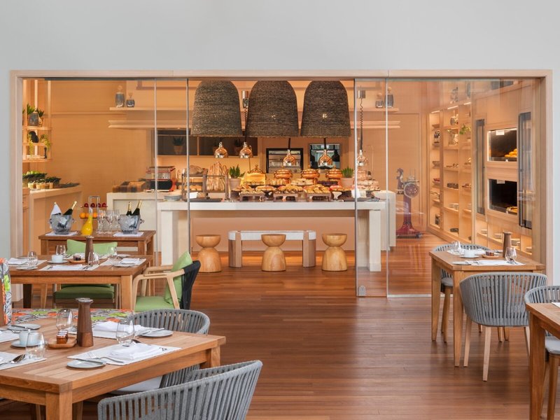 - Hlavná reštaurácia Degustačný stôl: Kuchyňa: medzinárodná, detské menu: za poplatok, rezervácia nie je nutná, bezlaktózové jedlá: za poplatok, na vyžiadanie nutná, rezervácia nie je nutná, vegetariánske jedlá: za poplatok, na vyžiadanie nutná, rezervácia nie je nutná, bufet, à la carte, menu na sedenie, rezervácia nie je nutná, za poplatok, január - december, denne 7:30 - 10:00 a 19:30 - 22:00, klimatizované, s terasou, na pláž, vysoká stolička