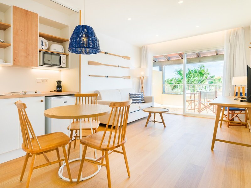 Štandardný apartmán (balkón alebo terasa): Kuchynský kút s chladničkou, rýchlovarnou kanvicou, mikrovlnnou rúrou, riadom, uterákmi. TV, telefón, internet (za poplatok), trezor (za poplatok). Kúpeľňa/sprcha, WC, fén. Balkón/terasa. Max. 4 osoby.