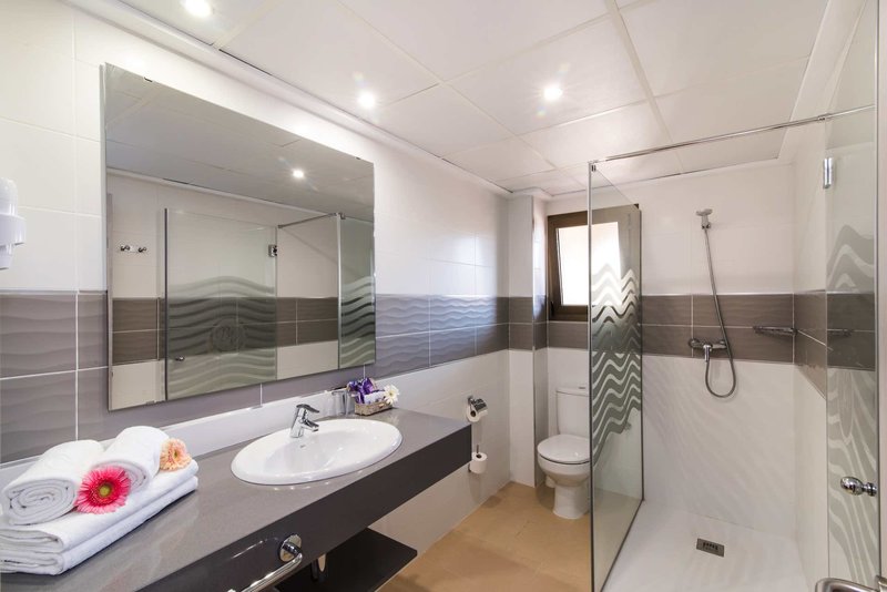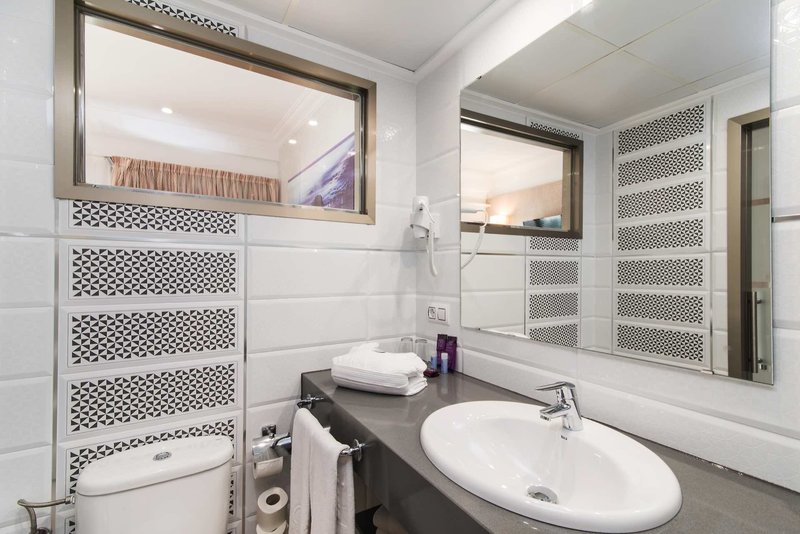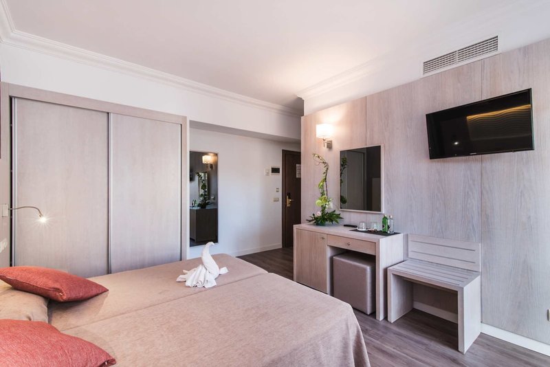 Dvojlôžková izba: vybavená vaňou alebo sprchou/WC, sušičom vlasov, klimatizáciou/kúrením, satelitnou TV, minibarom/chladničkou, telefónom, trezorom na prenájom a balkónom (D/KD). Veľkosť izby cca 24 m².