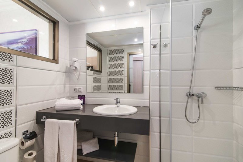 Dvojlôžková izba: vybavená vaňou alebo sprchou/WC, sušičom vlasov, klimatizáciou/kúrením, satelitnou TV, minibarom/chladničkou, telefónom, trezorom na prenájom a balkónom (D/KD). Veľkosť izby cca 24 m².