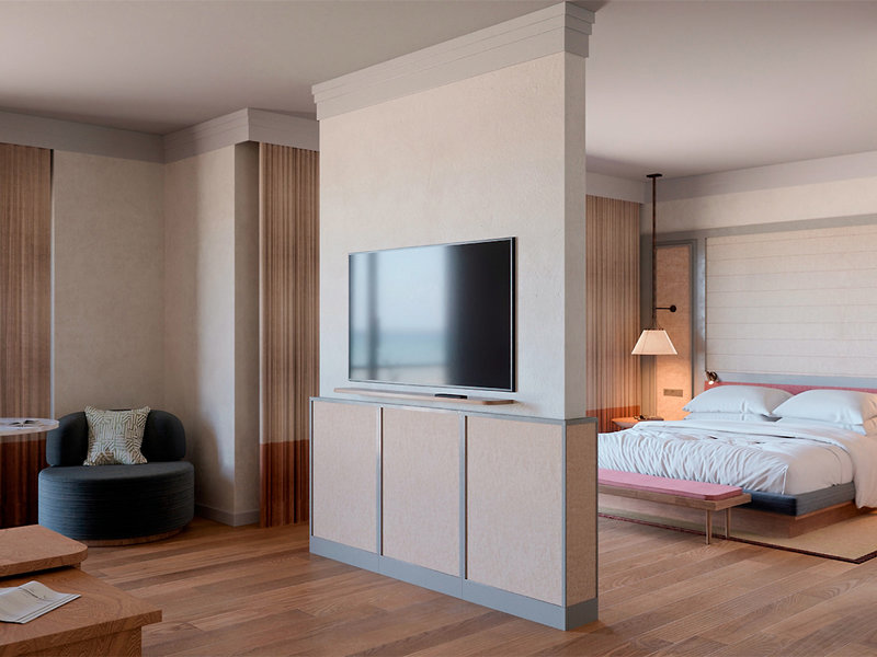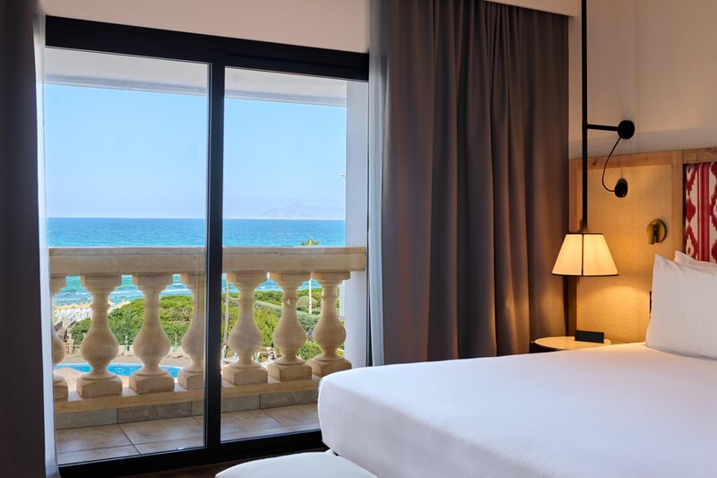 Apartmán (SUM, cca 86 m²), zrekonštruovaný v zime 2024/25, obývacia izba s rozkladacou pohovkou, samostatná spálňa, klimatizácia, minibar (za poplatok), kávovar Nespresso®, rýchlovarná kanvica, 1 fľaša vody pri príchode (v cene), smart TV, telefón, Wi-Fi (v cene), trezor. Kúpeľňa so sprchovacím kútom, WC, sušičom vlasov, váhou, županom, papučami, plážovou taškou. Terasa s výhľadom na more. Max. 3 dospelí + 1 dieťa.