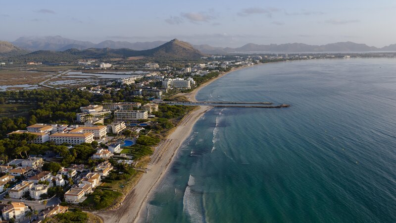 Lage: Direkt am langen Sandstrand der Playa de Muro. Ins Zentrum von Alcúdia und zum Yachthafen ca. 6 km, nach Ca’n Picafort ca. 4 km. Linienbushaltestelle am Hotel.