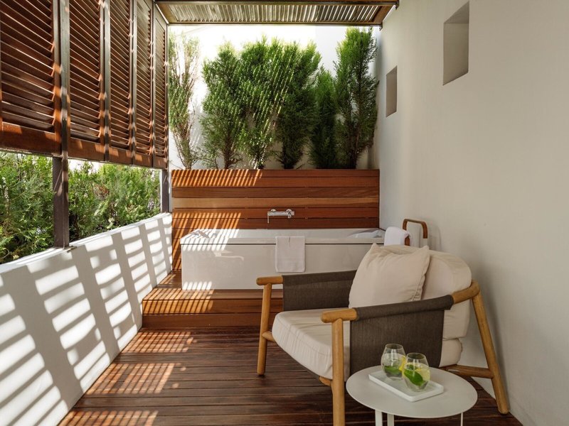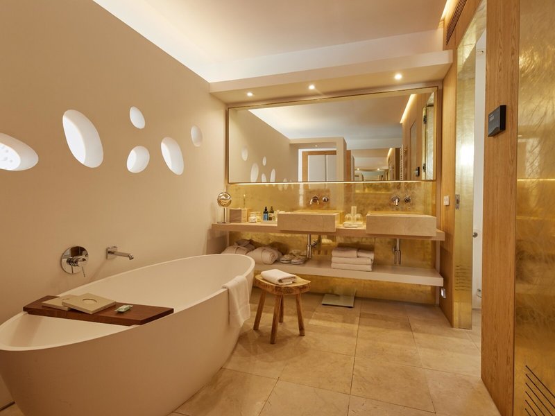 • Luxusný apartmán (SUX2), apartmán, v hlavnej budove, výhľad do záhrady, cca 75 m², celkový počet izieb v tomto type izby: 1, rozloženie: kombinovaná obývačka/spálňa, 1 posteľ king (200x200cm), 1 prístelka, klimatizácia: zadarmo, centrálne ovládaná, studená, teplá, kúrenie: centrálne ovládané, podlaha: dlažba, koberec, trezor: zadarmo, posedenie, pohovka, písací stôl, minibar: za poplatok, soft nápoje: za poplatok, voda: zdarma, alkoholické nápoje: za poplatok, občerstvenie: za poplatok, telefón, Internet: WLAN/WiFi: bez poplatku, televízor: plochá obrazovka, v obývacej časti, v spálni, nemčina kanály, rádio, izbová služba: 13:30 - 15:00 a 19:30 - 21:30, za poplatok, denná tlač: bez poplatku, jazyky: nemčina, angličtina, španielčina, taliančina, francúzština, oddelené sprcha, dažďová sprcha, vaňa, samostatné WC, papuče: bez poplatku, sušič vlasov, kozmetické zrkadlo, terasa: s ležadlami, s posedením