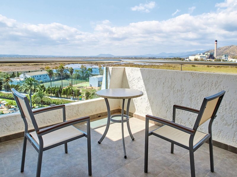 - Double Room (DZX1), Doppelzimmer, im Hauptgebäude, Poolblick, Gartenblick, ca. 25 m², letzte Komplettrenovierung 2017, Gesamtanzahl der Räume in diesem Zimmertyp: 1, Aufteilung wie folgt: 1 Schlafzimmer, Babybett, Klimaanlage: ohne Gebühr, saisonabhängig, individuell regelbar, Heizung: individuell regelbar, Fußboden: Parkett, Safe: pro Woche ca. 13 EUR, Schreibtisch, Kühlschrank: ohne Gebühr, Telefon, Internet: WLAN/WiFi: ohne Gebühr, Fernseher: Flatscreen, im Schlafzimmer, deutsches Programm, Sat-TV, Dusche, WC, Föhn, Balkon: mit Sitzgelegenheit