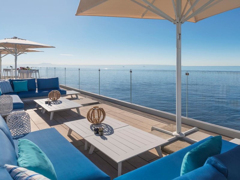 - Deluxe Sea View (ARTEMISA) (DZM1), Doppelzimmer, Nichtraucherzimmer, im Hauptgebäude, Meerseite, Meerblick, ca. 32 - 35 m², letzte Komplettrenovierung 2019, Gesamtanzahl der Räume in diesem Zimmertyp: 1, Aufteilung wie folgt: kombiniertes Wohn-/Schlafzimmer, 1 Schlafzimmer, Babybett: gegen Gebühr, Barzahlung, Anfrage & Reservierung notwendig, Klimaanlage: ohne Gebühr, zentral gesteuert, Heizung: saisonabhängig, zentral gesteuert, Fußboden: Fliesenboden, Safe: gegen Gebühr, Schreibtisch, Nespressomaschine, Wasserkocher, Telefon, Internet: WLAN/WiFi: ohne Gebühr, Fernseher: Flatscreen, im Schlafzimmer, Reinigungsservice: täglich, ohne Gebühr, Dusche, WC, Bademantel: ohne Gebühr, Slipper: ohne Gebühr, Föhn, Kosmetikspiegel, Balkon: mit Sitzgelegenheit