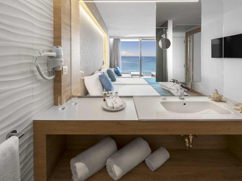 - Family Sea View (APOLO) (DZM2), Doppelzimmer, Nichtraucherzimmer, im Hauptgebäude, Meerseite, Meerblick, ca. 32 - 35 m², letzte Komplettrenovierung 2018, Gesamtanzahl der Räume in diesem Zimmertyp: 1, Aufteilung wie folgt: 1 Schlafzimmer, Klimaanlage: ohne Gebühr, saisonabhängig, Heizung: saisonabhängig, Safe: gegen Gebühr, Schreibtisch, Nespressomaschine, Telefon, Internet: WLAN/WiFi: ohne Gebühr, Fernseher: Flatscreen, im Schlafzimmer, Reinigungsservice: täglich, ohne Gebühr, Dusche, WC, Bademantel: ohne Gebühr, Slipper: ohne Gebühr, Föhn, Kosmetikspiegel, Balkon: mit Sitzgelegenheit