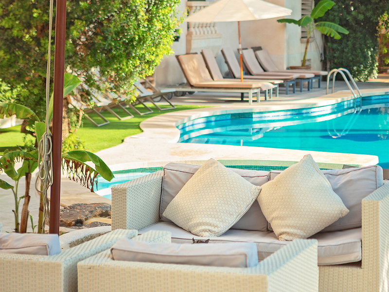 Vybavenie: Tento rodinný rezort, postavený v štýle malorskej vily, získal environmentálny certifikát EÚ. Ponúka veľkú záhradu, bazén s integrovaným detským bazénom, slnečnú terasu, ležadlá a slnečníky (uteráky sú v cene), čiastočne krytý snack bar pri bazéne a terasu s posedením. Na streche je k dispozícii nudistická terasa. Vstupná hala, recepcia, Wi-Fi (v cene), salónik s TV, bar, reštaurácia a vonkajšia terasa. K dispozícii je nabíjacia stanica pre elektromobily. Národná kategória: 4 hviezdičky, 70 izieb, 3 poschodia a výťah.
