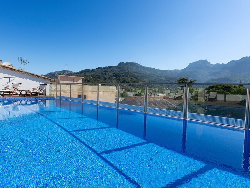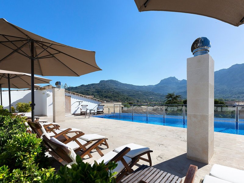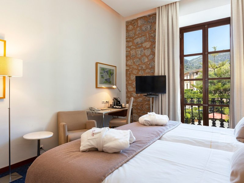 Lage & Umgebung Das attraktive Hotel der Luxusklasse befindet sich direkt im Stadtzentrum Sollers mit zahlreichen Einkaufs- und Unterhaltungsmöglichkeiten. Den 3 km entfernten Strand in Puerto de Soller kann man bequem mit der nostalgischen Straßenbahn „Roter Blitz“ erreichen. Eine Haltestelle ist nur etwa 200 m vom Hotel entfernt. Zudem beträgt die Transferzeit vom Flughafen in Palma etwa 45 Minuten.