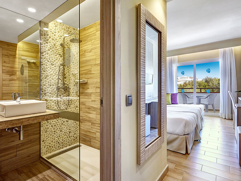 Wohnen: Doppelzimmer (DZ, ca. 26 qm), Klimaanlage (warm/kalt), Kühlschrank, TV, Telefon, WLAN (inklusive), Mietsafe. Dusche/WC, Föhn. Balkon. Wahlweise seitlicher Meerblick (DZM). Max. 2E/2E+1K
