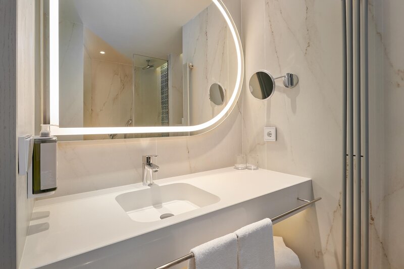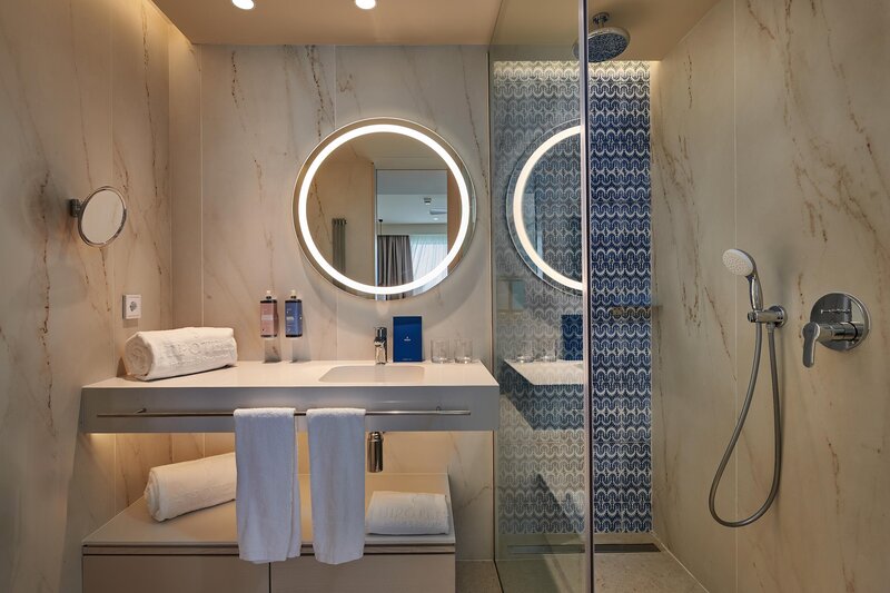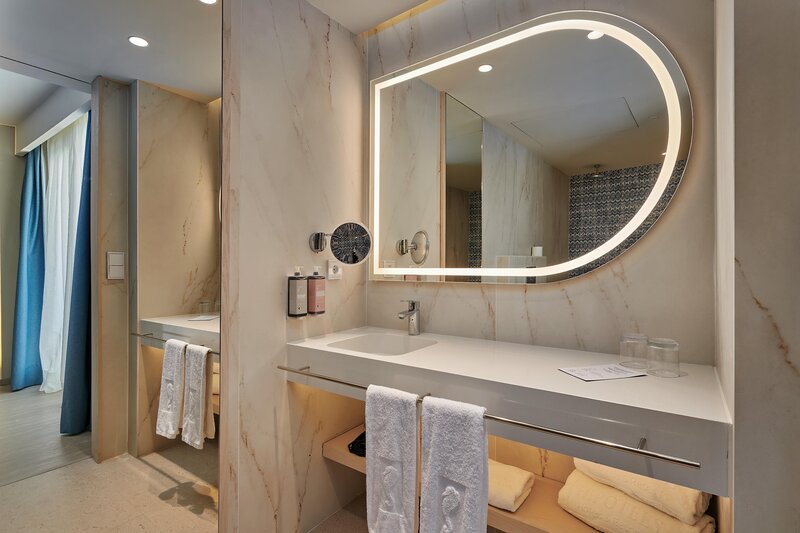 Suite (Balkon o. Terrasse, Meerblick): Klimaanlage (zentral gesteuert). Telefon, Internet (geg. Geb.), Safe (geg. Geb.). Bad/Dusche, WC, Föhn. Balk./Terr. Max. 3E.