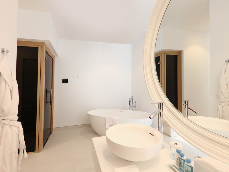- Suite Sea View Stargazer (SUM1), Suite, im Hauptgebäude, Meerseite, Meerblick, ca. 25 - 40 m², Gesamtanzahl der Räume in diesem Zimmertyp: 1, Aufteilung wie folgt: kombiniertes Wohn-/Schlafzimmer, 1 Schlafzimmer, Klimaanlage: ohne Gebühr, Safe: ohne Gebühr, Kaffeemaschine, Telefon, Internet: WLAN/WiFi: ohne Gebühr, Fernseher: Flatscreen, Roomservice: gegen Gebühr, Badewanne oder Dusche, WC, Bademantel: ohne Gebühr, Slipper: ohne Gebühr, Föhn, Balkon: mit Sitzgelegenheit