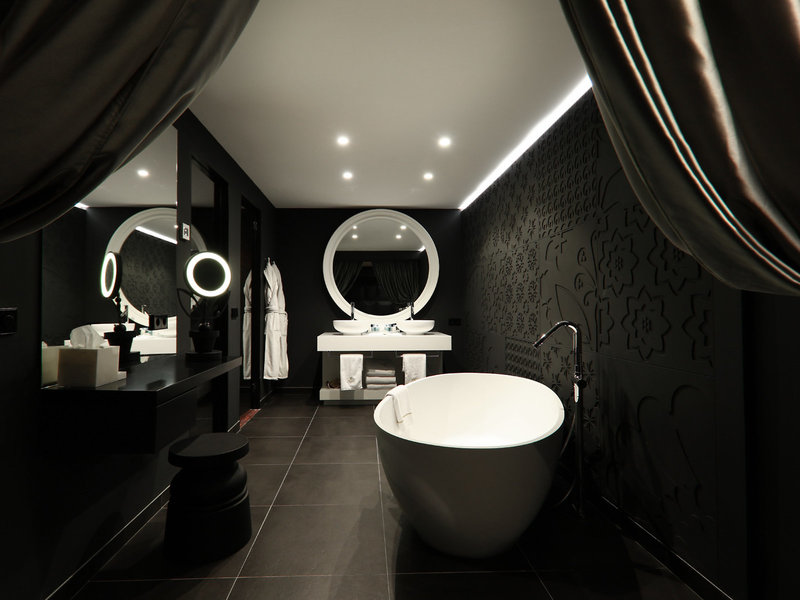 - Marcel Wanders (DZX1), dvojlôžková izba, minimálny vek v izbe: 16 rokov, v hlavnej budove, v prístavbe, výhľad na pozemok, cca 25 - 40 m², posledná kompletná rekonštrukcia v roku 2017, kombinovaná obývačka/spálňa, 25. spálne, 1 manželská posteľ, klimatizácia: zadarmo, individuálne nastaviteľné, kúrenie: individuálne nastaviteľné, podlaha: dlažba, koberec, trezor: zadarmo, písací stôl, kávovar, minibar: nealko, voda, alkoholické nápoje, občerstvenie, dopĺňanie minibaru, telefón, Internet: WLAN/WiFi: zadarmo, Televízor: plochá obrazovka, izbová služba: za poplatok, služba komorníka, upratovacia služba, denná tlač, vaňa alebo sprcha, WC, župan: bez poplatku, papuče : bez poplatku, sušič vlasov, kozmetické zrkadlo, balkón, balkón alebo terasa
