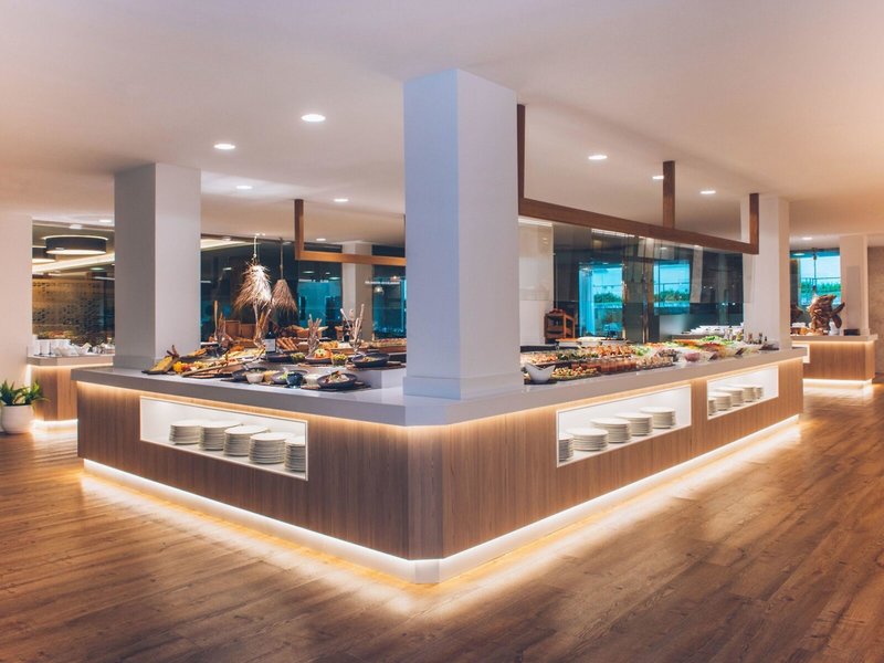 - Reštaurácia Beach Restaurant Embat: kuchyňa: medzinárodná, stredomorská, regionálna, španielska, ryby/morské plody, detská výživa, diétna kuchyňa: nutná rezervácia, bezlepkové jedlá, detský bufet, bezlaktózové jedlá: nutná rezervácia, vegetariánske jedlá: nutná rezervácia, vegánske jedlá: nutná rezervácia, celé jedlá , bufet, show cooking, bez poplatku, 12:30 - 15:00, s terasou, pri bazéne, vysoká stolička