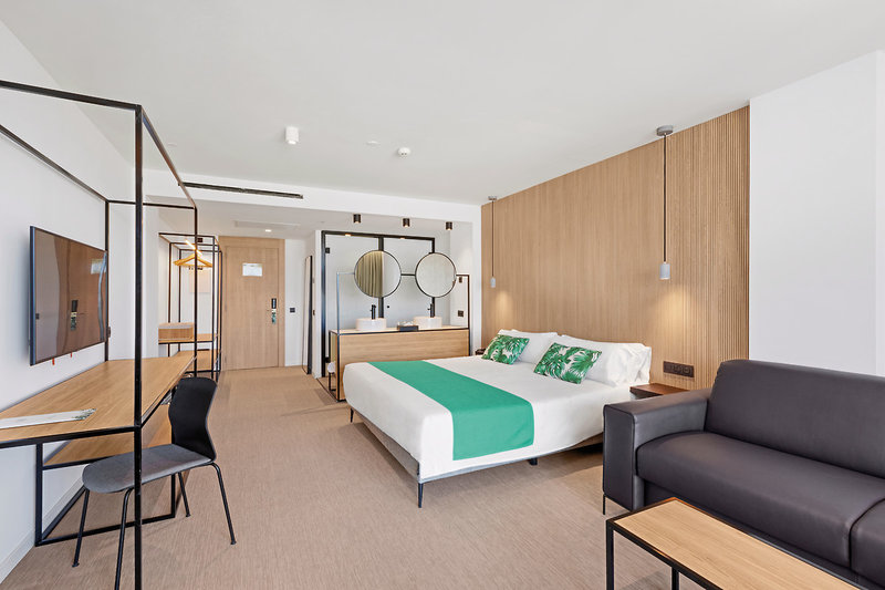 - 31-35 qm, Juniorsuite, Bettwäsche, Handtücher und Matratzen aus 100% Bio-Baumwolle, 1 Sofabett, 1 Bad, Dusche, Haartrockner, Klimaanlage, Minibar kostenpflichtig, Safe, 1 TV (Sat-TV), WLAN, Balkon (möbliert)