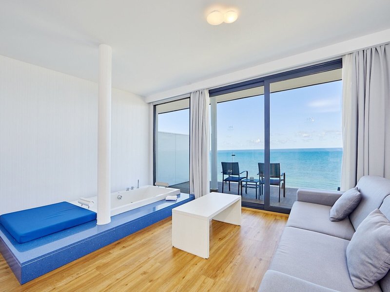 So wohnen Sie: In den Zimmern gibt es eine Klimaanlage und eine zentral steuerbare Heizung. Auf dem Balkon oder der privaten Terrasse der meisten Zimmer können die Gäste entspannen und den Blick auf das Meer genießen. Die Zimmer verfügen über ein Doppelbett oder ein Queensize-Bett. Zustellbetten können angefordert werden. Außerdem sind ein Safe, eine Minibar und ein Schreibtisch verfügbar. Ein Kühlschrank zählt ebenfalls zur Standardeinrichtung. Darüber hinaus sind ein Telefon mit Direktwahl, ein TV-Gerät mit Satelliten-/Kabelempfang, ein Wecker und WiFi (ohne Gebühr) vorhanden. Die Badezimmer sind ausgestattet mit einer Dusche, einer Badewanne und einer Whirlwanne. Für den täglichen Gebrauch stehen ein Haartrockner und ein Kosmetikspiegel zur Verfügung. Für besonderen Komfort in den Badezimmern sorgen Kosmetikartikel. Buchbar sind rollstuhlgerechte Zimmer. Das Hotel bietet Nichtraucherzimmer.