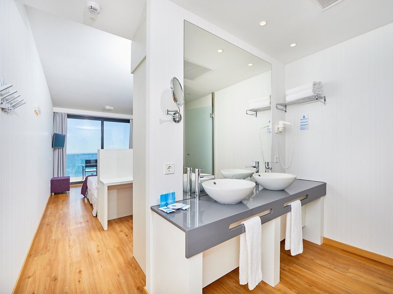 Ubytovanie: Izby sú vybavené klimatizáciou a ústredným kúrením. Väčšina izieb má balkón alebo súkromnú terasu, kde si hostia môžu oddýchnuť a vychutnať si výhľad na more. Izby majú manželskú posteľ alebo manželskú posteľ. Prístelky je možné vyžiadať. K dispozícii je aj trezor, minibar a písací stôl. Súčasťou štandardnej výbavy je aj chladnička. Okrem toho je k dispozícii telefón s priamou voľbou, TV so satelitným/káblovým príjmom, budík a WiFi (bez poplatku). Kúpeľne sú vybavené sprchovacím kútom, vaňou a vírivou vaňou. Na každodenné použitie je k dispozícii sušič vlasov a kozmetické zrkadlo. Kozmetické výrobky poskytujú extra pohodlie v kúpeľniach. Je možné si zarezervovať bezbariérové izby. Hotel ponúka nefajčiarske izby.