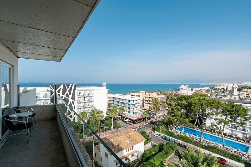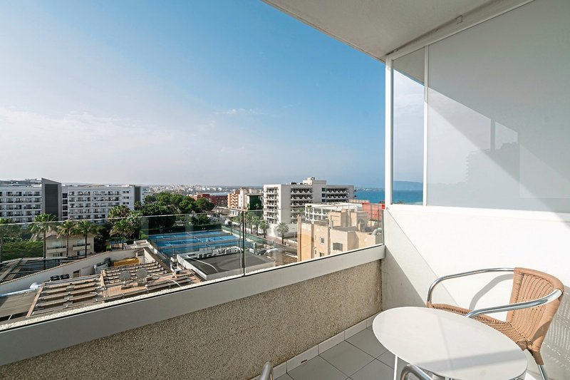 - Suite, 1 separates Schlafzimmer, kombinierter Wohn-/Schlafraum, 2 Bäder, Dusche oder Badewanne, Haartrockner, Kosmetikspiegel, Klimaanlage, Safe, 1 TV (Sat-TV), WLAN, Kühlschrank, Balkon (möbliert)