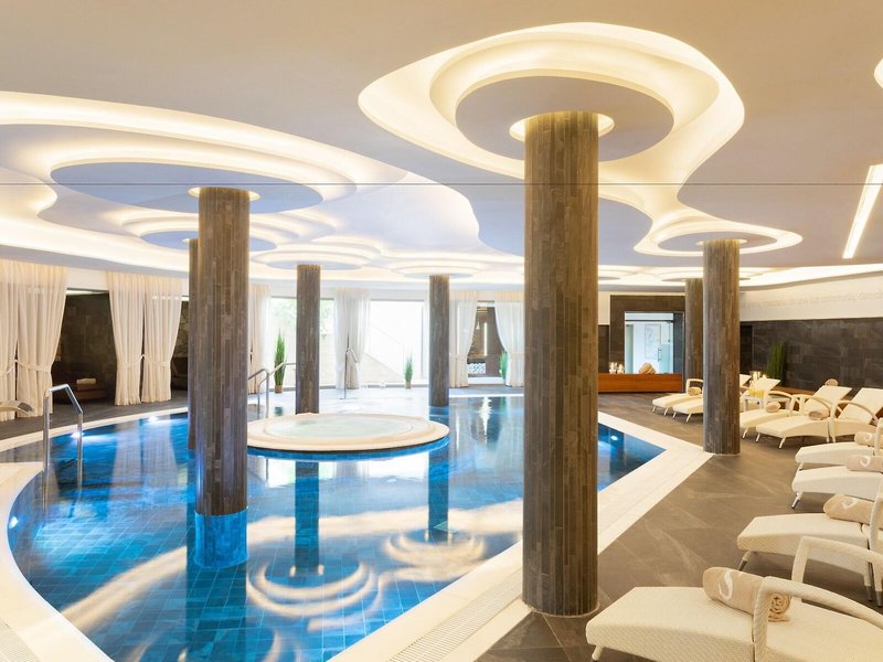 - Bazény: Vnútorný bazén, vonkajší bazén, slnečníky, ležadlá, osušky