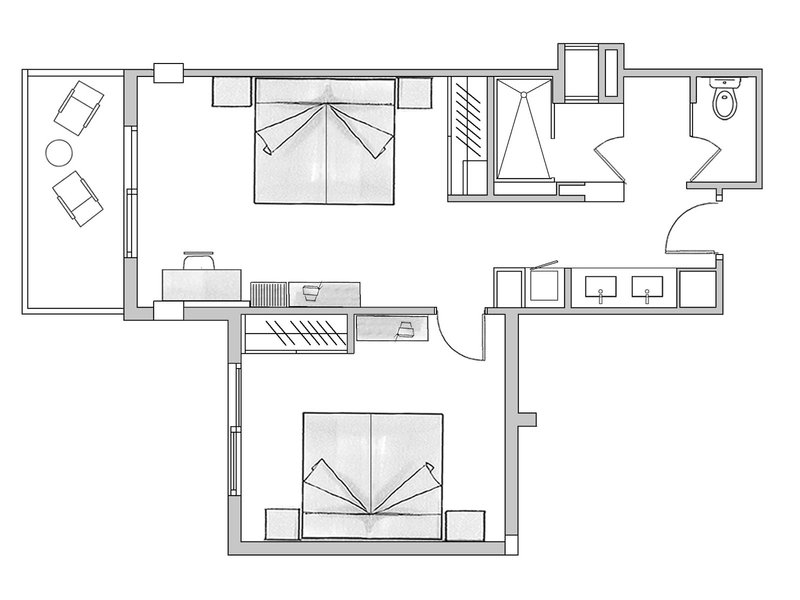- Family Room (2 Bedrooms) (FZX1), Familienzimmer, im Nebengebäude, ca. 43 m², Gesamtanzahl der Räume in diesem Zimmertyp: 2, Aufteilung wie folgt: 2 Schlafzimmer, 4 Einzelbetten (110x200cm), Babybett: ohne Gebühr, Klimaanlage: zentral gesteuert, Heizung: zentral gesteuert, Safe: ohne Gebühr, Deckenventilator, Kühlschrank, Telefon, Internet: WLAN/WiFi: ohne Gebühr, Fernseher: deutsches Programm, Sat-TV, Dusche, WC, Föhn, Balkon: mit Sitzgelegenheit