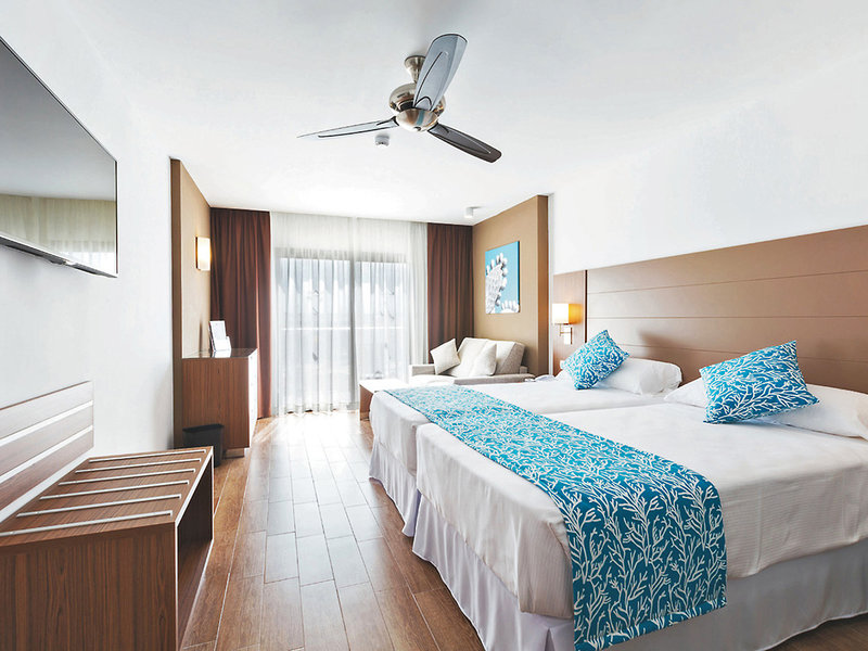 Vybavenie: Obľúbený a komfortný hotel z renomovanej hotelovej siete RIU, pozostávajúci z 2 budov. Medzi nimi je udržiavaná záhrada, 2 bazény, z ktorých jeden má plavecký bar, slnečnú terasu, ležadlá a slnečníky (osušky za zálohu), bazén/snack bar s terasou na sedenie. Priestranná recepcia, recepcia, WiFi (v cene), pohodlné posedenie, lounge bar so salónikom, herňa, bufetová reštaurácia, reštaurácia so španielskymi špecialitami 'Olé' (à la carte; nutná rezervácia) a reštaurácia s grilom 'Es Pil·larí' ( à la carte nutná rezervácia); Národná kategória: 4 hviezdičky, 442 izieb, 6 poschodí, 2 výťahy na budovu.