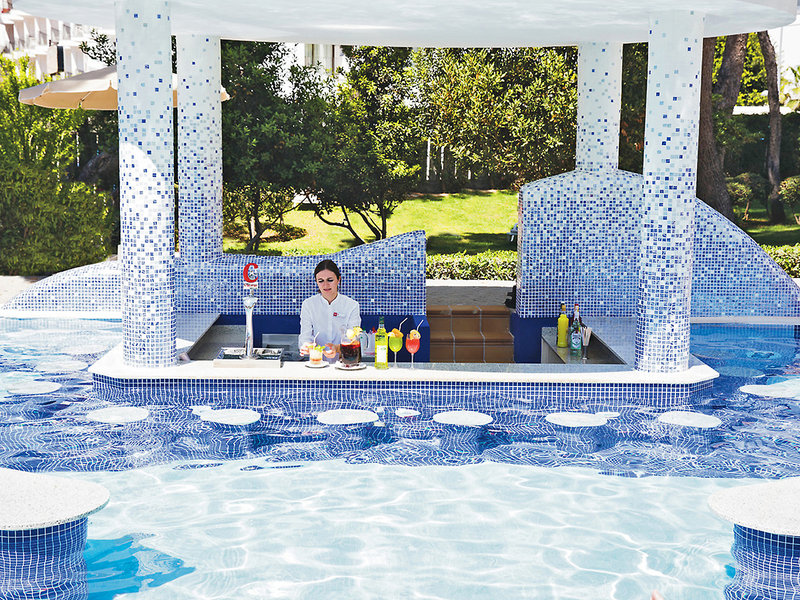 Ausstattung: Beliebtes und komfortables Hotel der renommierten Hotelkette RIU, bestehend aus 2 Gebäuden. Dazwischen ein gepflegter Garten, 2 Pools, davon einer mit Swim-up-Bar, Sonnenterrasse, Liegen und Schirme (Badetücher gegen Kaution), Pool-/Snackbar mit Sitzterrasse. Großzügiger Empfangsbereich, Rezeption, WLAN (inklusive), gemütliche Sitzgruppen, Loungebar mit Salon, Spielezimmer, Buffetrestaurant, spanisches Spezialitätenrestaurant 'Olé' (à la carte; Reservierung erforderlich) und Grillrestaurant 'Es Pil·larí' (à la carte; Reservierung erforderlich). Landeskategorie: 4 Sterne, 442 Zimmer, 6 Etagen, je 2 Lifte pro Gebäude.
