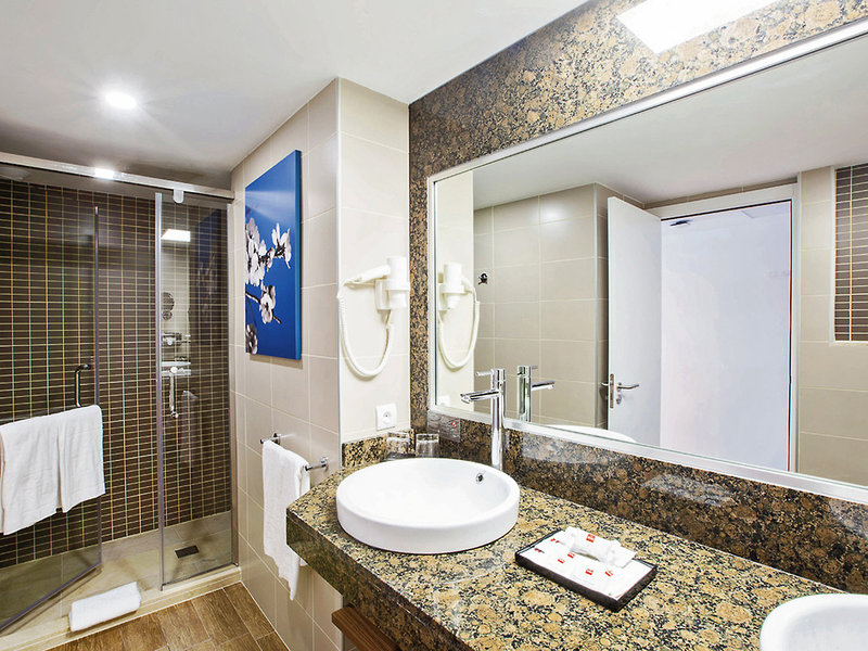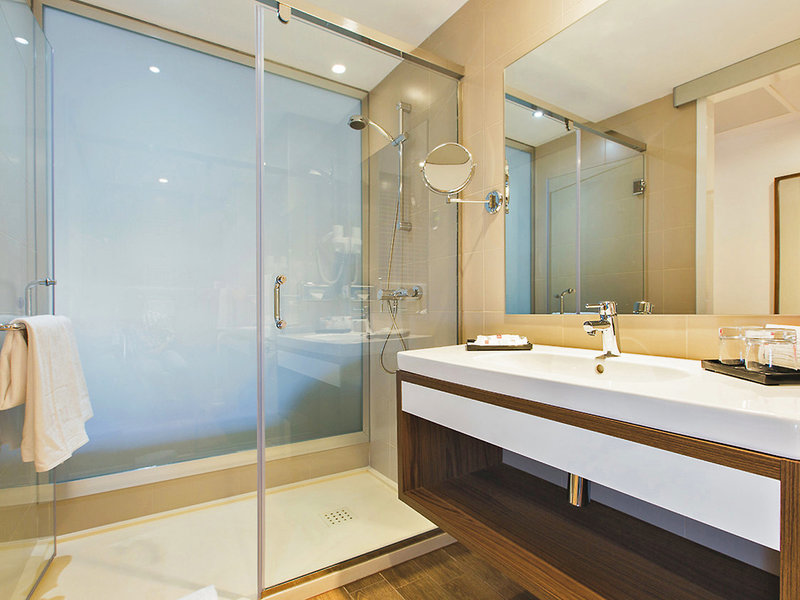 Bývanie: Dvojlôžková izba (dvojlôžková izba, cca 24 m2), vkusne zariadená, klimatizácia (teplá/studená, centrálne ovládaná, každú hodinu), mini chladnička, TV, telefón, WiFi (v cene), trezor. Kúpeľňa so sprchou, WC, fén. Balkón/terasa. Maximálne 3E