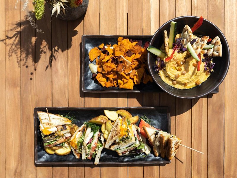 Essen & Trinken: Der gastronomische Bereich wartet mit einem Restaurant und einer Bar auf. Ein leckeres Frühstück schenkt Energie für den Tag. Vegetarische Gerichte und vegane Kost werden auf Wunsch zubereitet.