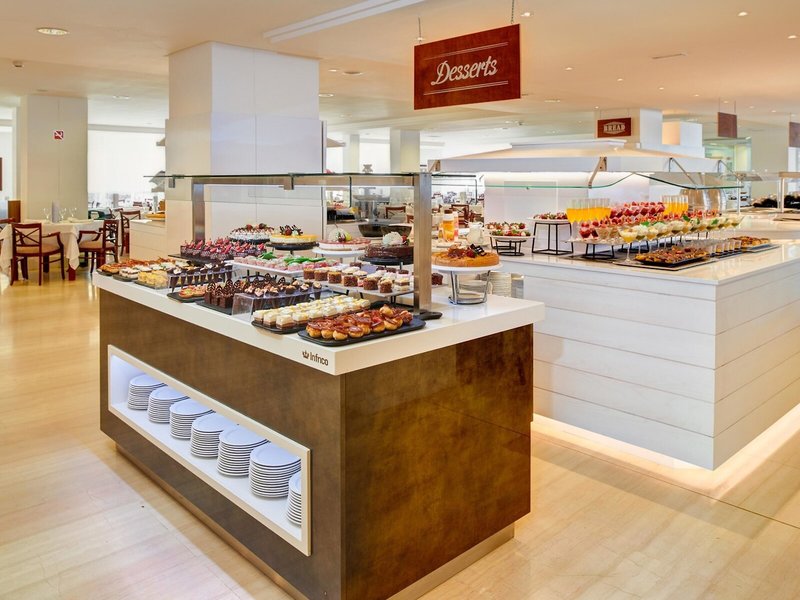 - Hlavná reštaurácia: Kuchyňa: medzinárodná, stredomorská, španielska, bezlepkové jedlá, detský bufet: zdarma, bezlaktózové jedlá: na vyžiadanie nutné, ľahké jedlá, vegetariánske jedlá, bufet