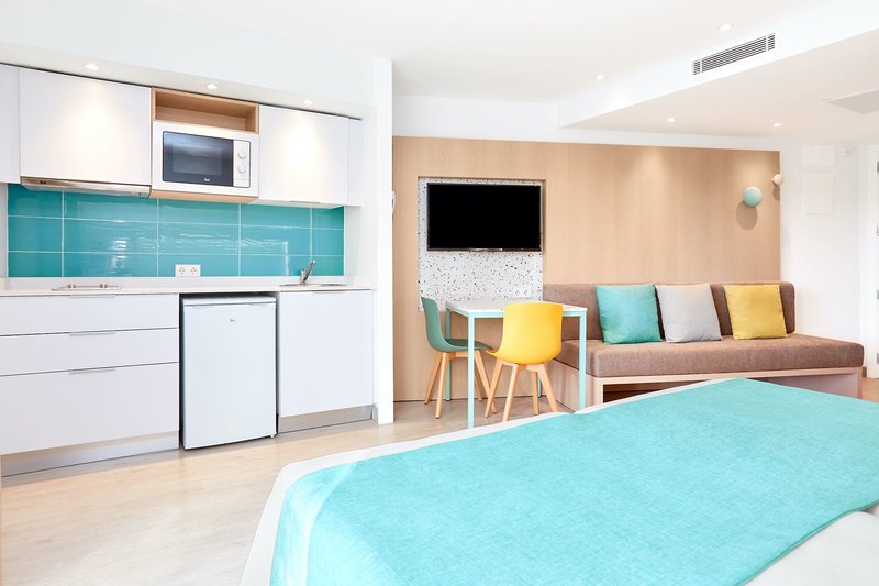Studio: Die modern eingerichteten Studios verfügen über einen kombinierten Wohn-/Schlafraum und sind ausgestattet mit Dusche/WC, Föhn, Klimaanlage, TV, Telefon, Safe, Kitchenette, Kühlschrank sowie einen möblierten Balkon. (S12) Zimmergröße ca. 25 m².