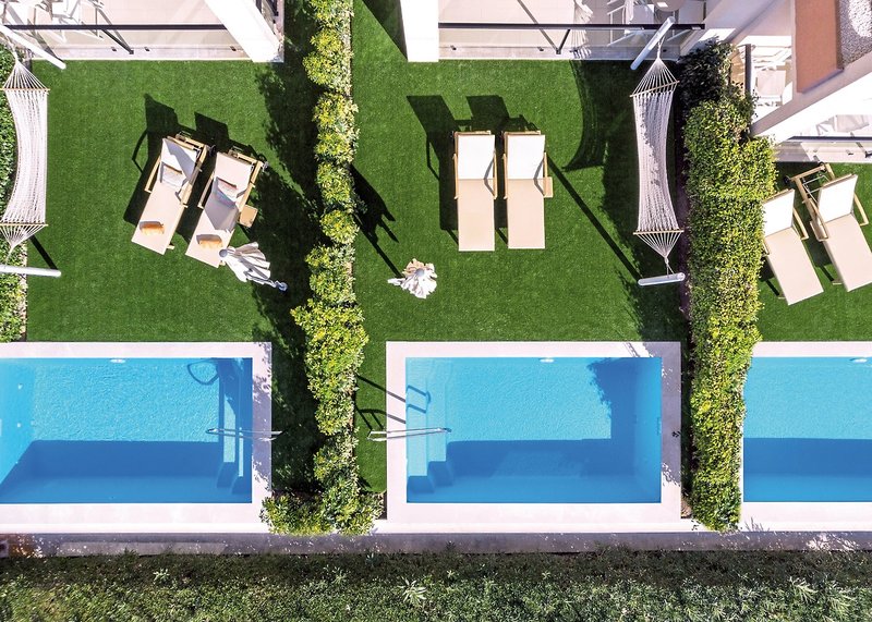 - 46-50 qm, Appartement, Standard, Erdgeschoss, 1 separates Schlafzimmer, kombinierter Wohn-/Schlafraum, Sofabett, Regendusche, Bademantel, Badeslipper, Haartrockner, Klimaanlage, Safe, 2 TVs (Sat-TV, Smart-TV), WLAN, Kochnische, Wasserkocher, Mikrowelle, Espressomaschine, Toaster, Kühlschrank, Terrasse (möbliert), Privatpool, Kopfkissen-Menü, separater Check-in & Check-out, late Check-out (nach Verfügbarkeit), Concierge-Service