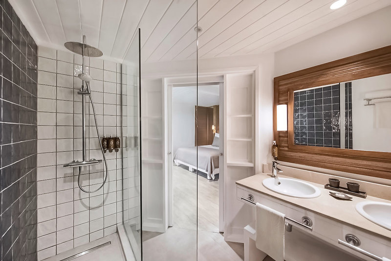 - 26-30 qm, Doppel, Superior, Meerseite, Nichtraucher, kombinierter Wohn-/Schlafraum, Dusche, separates WC, Haartrockner, Fliesen, Klimaanlage, individuell regulierbar, Minibar kostenpflichtig, Safe, TV (Sat-TV), Kaffee/Tee, Balkon oder Terrasse (möbliert)