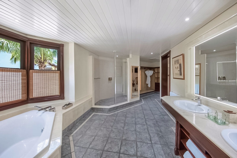 - 151-200 m2, so spojovacími dverami, morská strana, výhľad do záhrady, 1 samostatná spálňa, kombinovaná obývačka/spálňa, priestor na posedenie, 2 kúpeľne, sprchovací kút, vaňa, samostatné WC, fén, dlažba, klimatizácia, individuálne nastaviteľná, minibar pre za poplatok, trezor, žehliaca doska, žehlička, TV (satelit, plochá obrazovka), káva/čaj, balkón alebo terasa (zariadené)