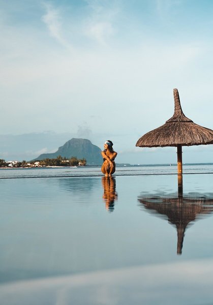 Poloha a okolie: Tento rezort v maurícijskom štýle sa nachádza na západnom pobreží, priamo na jemnej, mierne sa zvažujúcej piesočnatej pláži a ponúka krásny výhľad na impozantnú horu Le Morne. Je to útočisko pre páry, ktoré hľadajú pokoj, pohodlie a personalizované služby v elegantnom prostredí. V tejto zátoke je možné pozorovať delfíny. Mesto Flic en Flac a autobusová zastávka sú vzdialené približne 5 km. Centrum mesta Port Louis je vzdialené približne 25 km. Čas transferu: približne 60 minút.