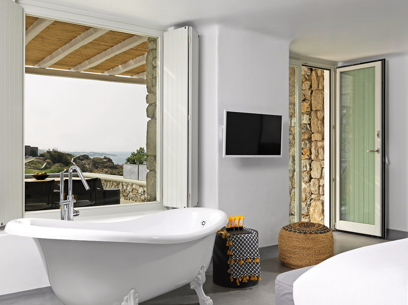 - 36-40 qm, Suite, Meerblick, Bettwäsche, Handtücher und Matratzen aus 100% Bio-Baumwolle, Dusche, Bademantel, Badeslipper, Haartrockner, Klimaanlage, Minibar kostenpflichtig, Safe, TV (Sat-TV, Flachbildschirm), Kaffeemaschine, Espressomaschine, Terrasse (möbliert), Plunge Pool, hochwertige Badartikel