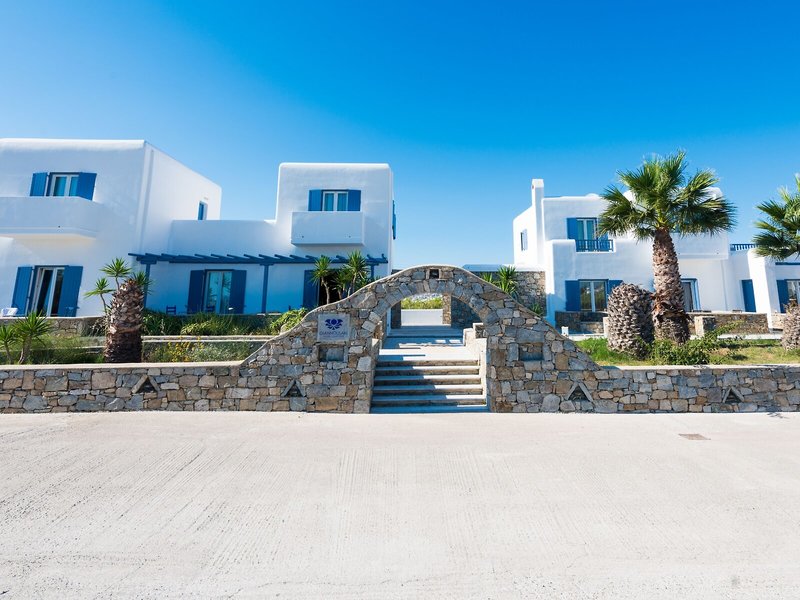 Poloha a okolie Tento apartmánový hotel sa nachádza v pokojnej a malebnej oblasti Glastros, len 2 km od mesta Mykonos. Je mimo hlavnej cesty, ktorá vedie do Platis Gialos z hlavného mesta. Glastros ponúka nádherný výhľad na Egejské more a na západy slnka.