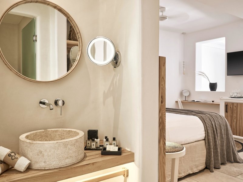 - Junior Suite s výhľadom na more (JSM1), nefajčiarska izba, minimálny vek v izbe: 18 rokov, v hlavnej budove, výhľad na more, výhľad na bazén, cca 30-35 m², celkový počet izieb tohto typu: 1, dispozičné riešenie: kombinovaná obývacia izba/spálňa, klimatizácia: individuálne ovládaná, chladenie, teplo, kúrenie: individuálne ovládané, podlaha: dlažba, trezor, stropný ventilátor, pohovka, písací stôl, kávovar Nespresso, minibar: za poplatok, nealkoholické nápoje, voda, alkoholické nápoje, občerstvenie, dopĺňanie minibaru, telefón, internet: Wi-Fi, TV: plochá obrazovka, v spálni, satelitná TV, izbová služba: za poplatok, upratovacia služba: denne, sprcha, dažďová sprcha, WC, samostatné WC, župan, papuče, fén, kozmetické zrkadlo, balkón alebo terasa: s posedením