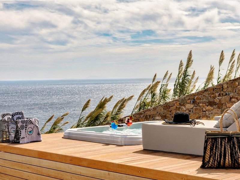 - Ultimate Bliss Suite Private Pool Sea View (SUM3), Nichtraucherzimmer, Mindestalter im Zimmer: 18 Jahre, im Hauptgebäude, Meerblick, ca. 30 - 35 m², kombiniertes Wohn-/Schlafzimmer, 1 King Size Bett, Klimaanlage: individuell regelbar, kalt, warm, Heizung: individuell regelbar, Fußboden: Fliesenboden, Safe, Deckenventilator, Schreibtisch, Nespressomaschine, Minibar: gegen Gebühr, Softdrinks, Wasser, alkoholische Getränke, Snacks, Minibarauffüllung, Telefon, Internet: WLAN/WiFi, Fernseher: Flatscreen, Sat-TV, Roomservice: gegen Gebühr, Reinigungsservice: täglich, Dusche, Regendusche, WC, separates WC, Bademantel, Slipper, Föhn, Kosmetikspiegel, Balkon: mit Liegen, mit Sitzgelegenheit, mit Plunge Pool, Balkon oder Terrasse: mit Liegestühlen