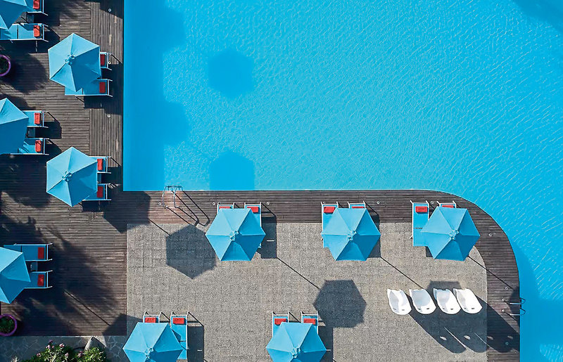 - 31-35 m2, apartmán, výhľad na more, sprcha alebo vaňa, WC, župan, sušič vlasov, klimatizácia, minibar za poplatok, trezor, TV (satelitná TV), WiFi, káva/čaj, terasa, privátny bazén, vankúšové menu, po príchode do izbovej vody