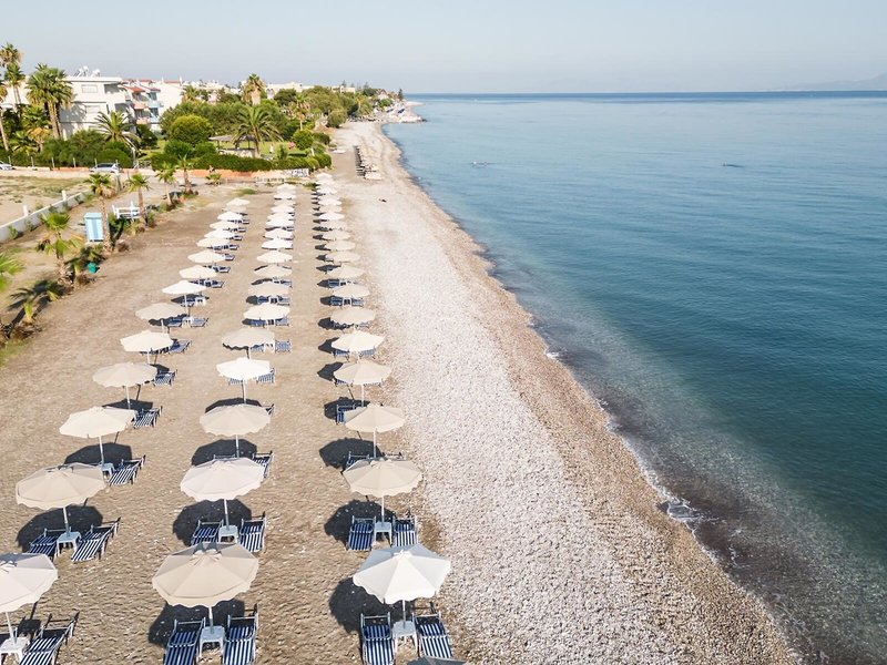 - Pláž: štrková, mierne svahovitá, prírodná, odporúčaná kúpacia obuv, verejná, ležadlá: za poplatok, tretiu poskytovatelia, slnečníky: za poplatok, tretiu poskytovatelia