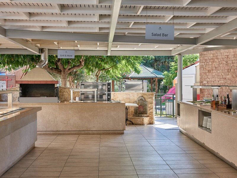 - Reštaurácia Pergola Pool Side Taverna: Kuchyňa: grécka, medzinárodná, miestna, regionálna, ryby/morské plody, grilované jedlá, bufet, show cooking, rezervácia nie je potrebná, zdarma, v závislosti od počasia, denne 12:30 - 14:15, s terasou, pri bazéne, detská stolička
