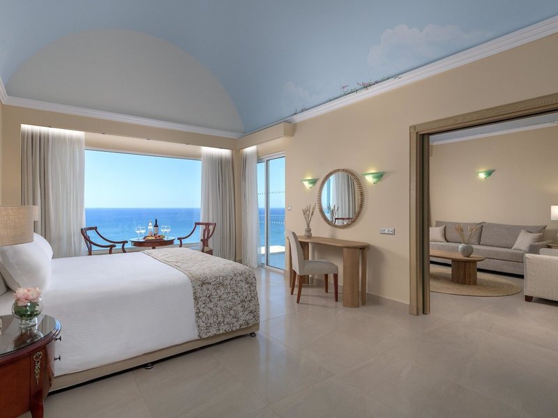 - Deluxe junior suite sea view (JSM1), Juniorsuite, Nichtraucherzimmer, Meerblick, ca. 51 m², letzte Teilrenovierung 2023, Gesamtanzahl der Räume in diesem Zimmertyp: 1, Aufteilung wie folgt: kombiniertes Wohn-/Schlafzimmer, 1 Zustellbett, Babybett: ohne Gebühr, Anfrage notwendig, Klimaanlage: ohne Gebühr, individuell regelbar, kalt, warm, Safe: ohne Gebühr, Nespressomaschine, Kaffee-/Teezubereiter, Minibar: gegen Gebühr, bei All Inclusive inklusive, Minibarauffüllung: täglich, Telefon, Internet: WLAN/WiFi: ohne Gebühr, Fernseher: deutsches Programm, Sat-TV, Roomservice: täglich, gegen Gebühr, Reinigungsservice: ohne Gebühr, Badewanne mit integriertem Whirlpool, WC, Bademantel: ohne Gebühr, Slipper: ohne Gebühr, Föhn, Balkon oder Terrasse: mit Sitzgelegenheit