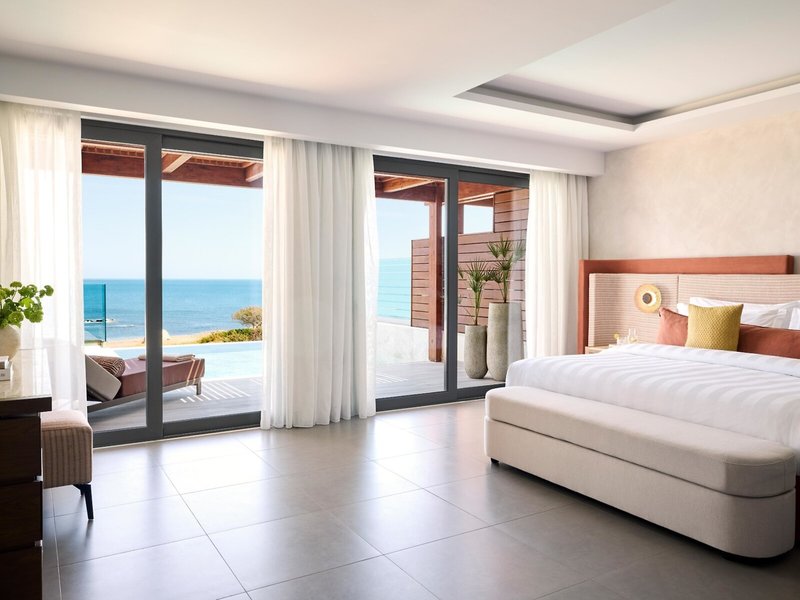 - Mediterranean Suite Sea View Private Pool (SUM1), Suite, Nichtraucherzimmer, Mindestalter im Zimmer: 16 Jahre, im Nebengebäude, Meerblick, ca. 44 m², Gesamtanzahl der Räume in diesem Zimmertyp: 1, Aufteilung wie folgt: kombiniertes Wohn-/Schlafzimmer, 1 King Size Bett, Klimaanlage: ohne Gebühr, Mai - Oktober, individuell regelbar, kalt, Fußboden: Fliesenboden, Safe, Sitzecke, Schreibtisch, Bügeleisen, Bügelbrett, Nespressomaschine, Kaffee-/Teezubereiter, Minibar: gegen Gebühr, Softdrinks: gegen Gebühr, Wasser: gegen Gebühr, alkoholische Getränke: gegen Gebühr, Snacks: gegen Gebühr, Minibarauffüllung: täglich, Telefon, Internet: WLAN/WiFi: ohne Gebühr, Breitband-Internet/DSL: ohne Gebühr, Fernseher: Flatscreen, deutsches Programm, Sat-TV, iPod-Docking Station, Roomservice: täglich, gegen Gebühr, Reinigungsservice: täglich, ohne Gebühr, separate Dusche, Badewanne mit integriertem Whirlpool, WC, Bademantel: ohne Gebühr, Slipper: ohne Gebühr, Föhn, Kosmetikspiegel, Terrasse: mit Liegestühlen, mit Private Pool