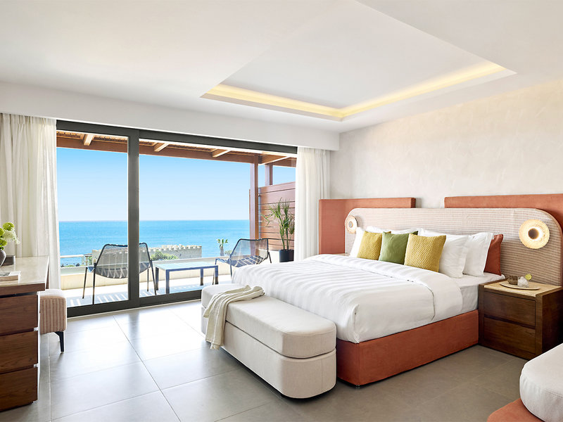 Špeciálny luxus pre vašu dovolenku: Junior Suite (JS, cca 30 m²), klimatizácia, minibar (za poplatok), kávovar/čajník, espresso kávovar, výber vankúšov, 55-palcový TV, telefón, Wi-Fi, trezor. Kúpeľňa, sprchovací kút, WC, sušič vlasov, župany, papuče. Balkón/terasa, súkromný bazén, bočný výhľad na more. Max. 2 osoby.
